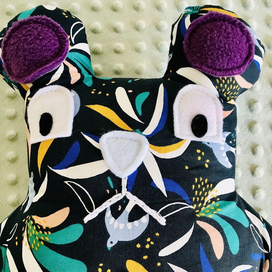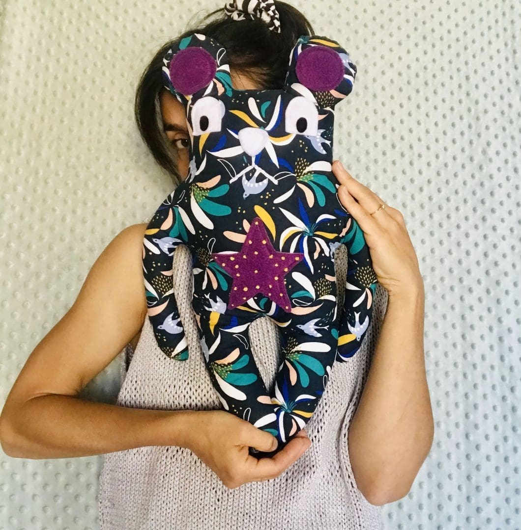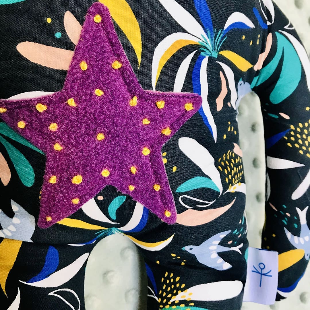 • Υλικά: βαμβακερό ύφασμα, λεπτομέρειες απο φλις και φετρίνα, στοιχεία κεντημένα στο χέρι, υποαλλεργική γέμιση