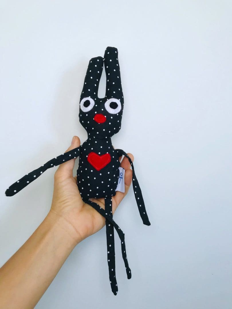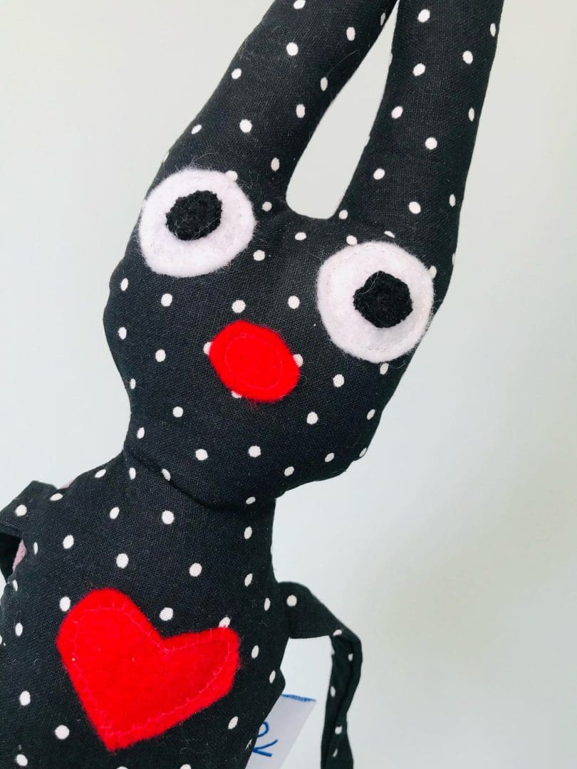 • Υλικά: βαμβακερό ύφασμα, μεταλλικό κουδουνάκι στο εσωτερικό, λεπτομέρειες απο φλις και φετρίνα, στοιχεία κεντημένα στο χέρι, υποαλλεργική γέμιση