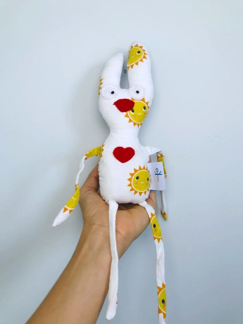 - Υλικά: βαμβακερό ύφασμα, μεταλλικό κουδουνάκι στο εσωτερικό, λεπτομέρειες απο φλις και φετρίνα, στοιχεία κεντημένα στο χέρι, υποαλλεργική γέμιση